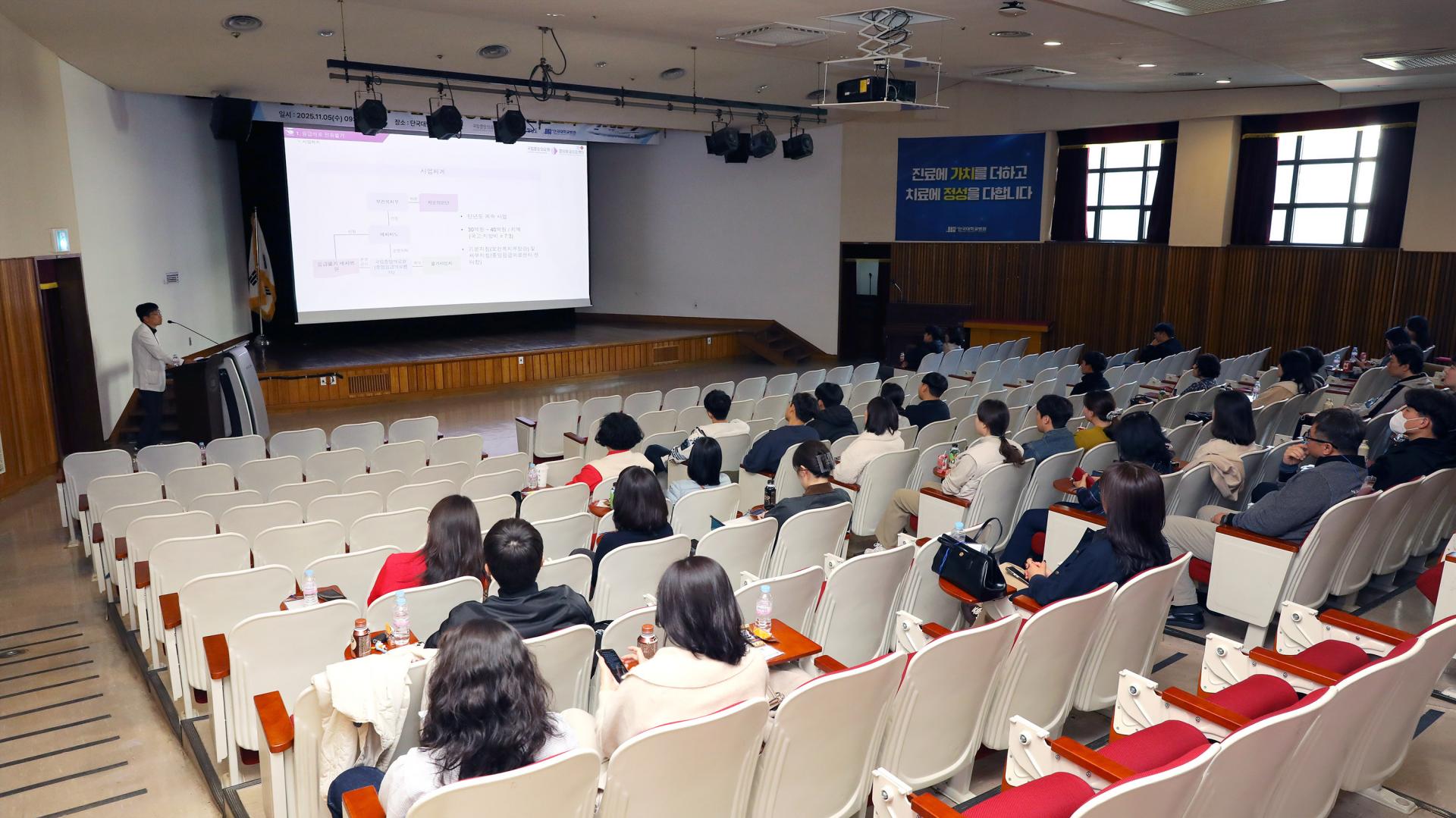 사진=단국대병원이 5일 병원 대강당에서 충남 응급의료 전용헬기(닥터헬기) 인계점 관할 의료진과 현장 관리자를 대상으로 환자 인계 및 관리, 운용 방법 등에 대한 교육을 하고있다.