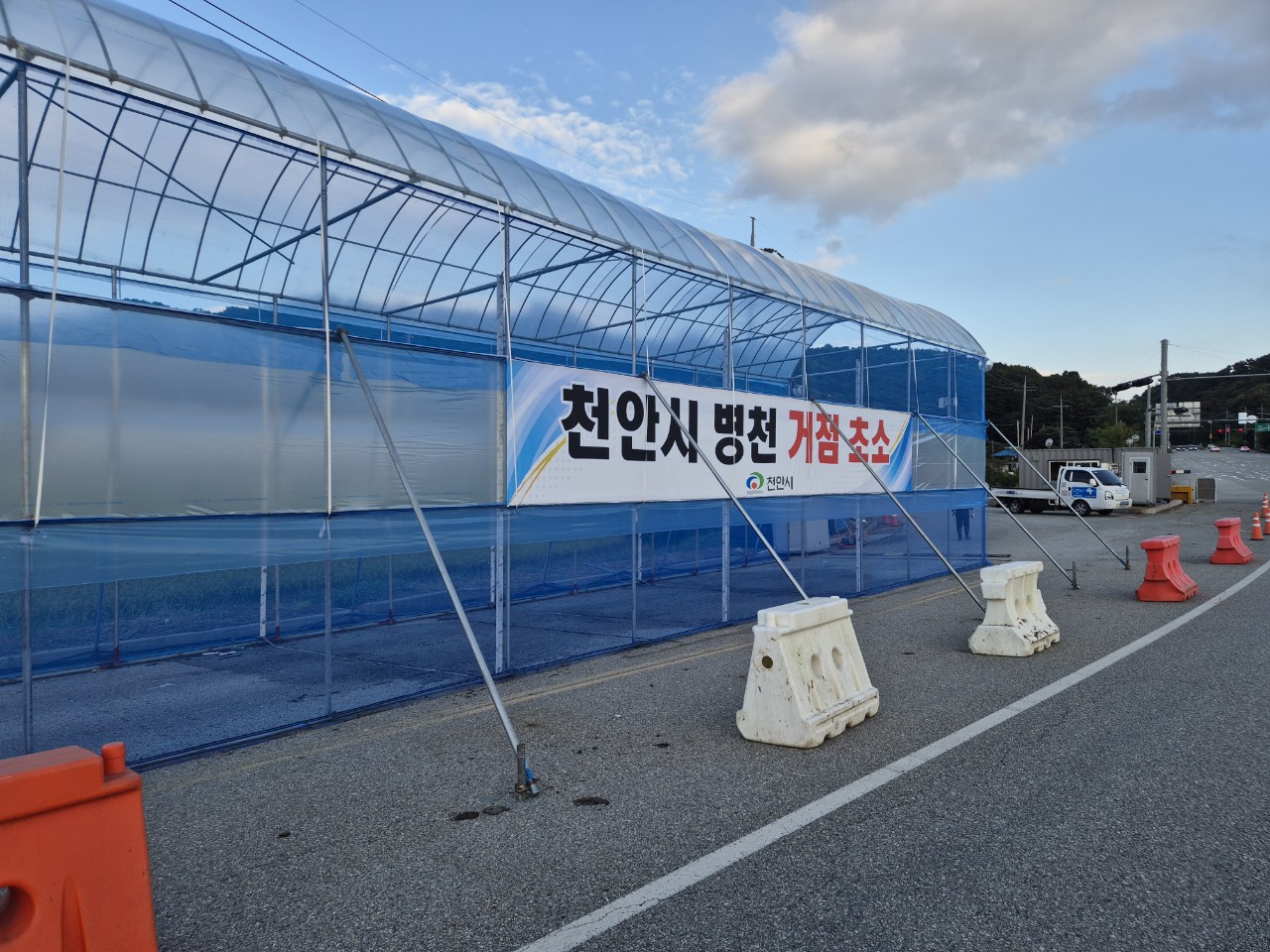 사진=풍세·용정 산란계밀집단지에 설치된 통제초소.