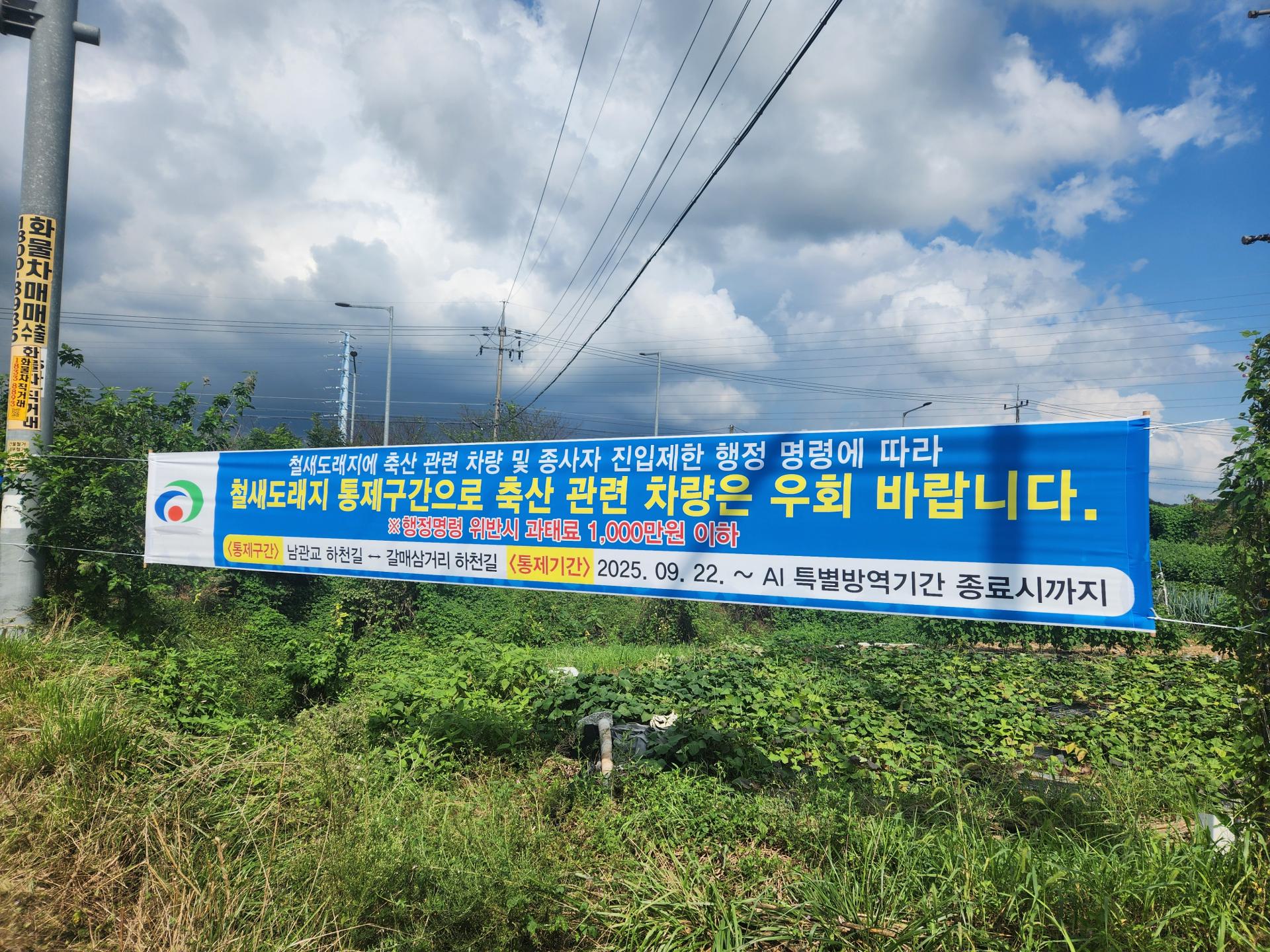 철새를 통한 AI 차단을 위해 철새도래지 특별관리를 실시한다. 철새도래지 인근 도로 축산차량 출입 통제 및 농장 진입로 소독, 하천변 순회 소독, 철새도래지 인근 농경지 경운작업 등을 추진한다.
